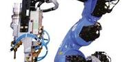 Bildtext (Vorschaufoto): Aktuelles Beispiel für leistungsfähige Schweißroboter von YASKAWA: der 7-achsige MOTOMAN VS100 mit einer Traglast bis zu 110 kg / Bildtext (Beitragsfoto): Schweißanlage mit "Error Recovery" Funktion
