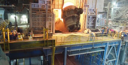 Quelle: Primetals Technologies Bildtext: Der neue Konverter beim Chargieren. (Foto: Primetals Technologies)