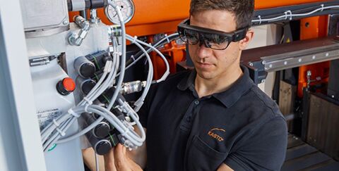 Vorschaubild: Der Anwender hat dank Smart Glasses die Hände frei und kann die Anweisungen des Helpdesk-Mitarbeiters direkt umsetzen.