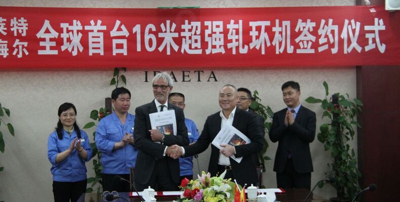 Shandong Iraeta Heavy Industry Co., Ltd. (SIHI), China, hat bei der SMS group eine neu entwickelte Ringwalzmaschine für die Produktion von nahtlos gewalzten Ringen bestellt. Mit der Radial-Axial-Ringwalzmaschine vom Typ RAW 2500/1250-16000/3000 können Ringe mit einem Durchmesser von maximal 16 Metern erstmalig nahtlos gewalzt werden. Die maximal walzbare Ringhöhe beträgt drei Meter. Ab Ende 2017 ist Iraeta Heavy Industry das einzige Unternehmen weltweit, das nahtlose Ringe in dieser Größe walzen kann.