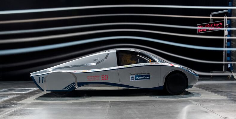 Solar-Sportwagen von ThyssenKrupp: Test im Windkanal