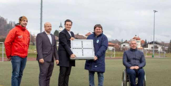 Die sechs LED-Flutlichter, verteilt auf drei Masten, werden im kommenden Jahr auf dem Outdoor-Sportplatz, der vor allem von Schüler*innen und Vereinen genutzt wird, installiert. Zur offiziellen „Übergabe“ des gespendeten Projekts erschienen auch der Bürgermeister der Gemeinde sowie die Verantwortlichen des Sportvereins und der Gemeinde. Nächstes Jahr wird das Projekt, eins von vielen, die bereits in Zusammenarbeit mit der Gemeinde realisiert wurden, umgesetzt.