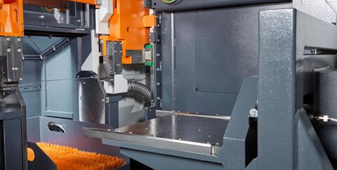 Damit keine gesundheitsschädlichen Kleinstpartikel in die Umgebungsluft gelangen, ist die KASTOwin amc voll verkleidet. Zudem verfügt sie über eine Vorbereitung für den Anschluss einer Absauganlage. Der Anwender gibt die Stärke der Grundplatte über die serienmäßige Steuerung SmartControl ein und die Säge trennt automatisch die Bauteile im entsprechenden Aufmaß ab. Das Ergebnis ist ein effizienter, präziser, werkzeugschonender und kalkulierbarer Sägevorgang.