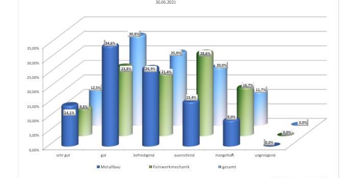 Zur aktuellen wirtschaftlichen Lage äußern sich vier von zehn Metallern positiv. Allerdings besteht nach wie vor ein Unterschied zwischen den beiden großen Bereichen Metallbau und Feinwerkmechanik. Bei rund der Hälfte der Metallbauern und lediglich bei jedem dritten Feinwerkmechaniker trifft diese Einschätzung zu. Analog schätzen nahezu jeder zehnte Metallbauer aber mehr als jeder sechste Feinwerker ihre Lage mangelhaft oder schlechter ein.