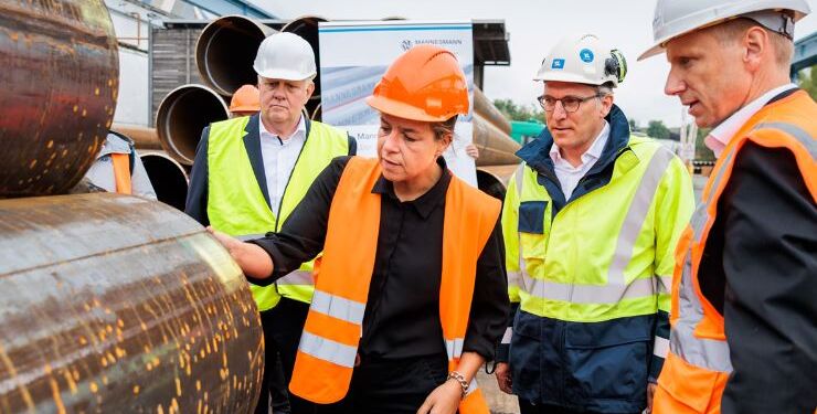 Die Ministerin für Wirtschaft, Industrie, Klimaschutz und Energie sowie stellvertretende Ministerpräsidentin des Landes Nordrhein-Westfalen, Mona Neubaur, besuchte die Mannesmann Line Pipe GmbH in Hamm. Die Politikerin informierte sich über die Fertigung von Stahlrohren für eine Anbindungsleitung des LNG-Terminals in Wilhelmshaven.