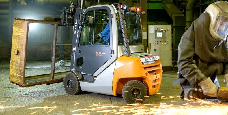 Quelle: STILL GmbH Bildtext: RX 70-25 beim Transport schwerer Stahlteile (Foto: STILL)
