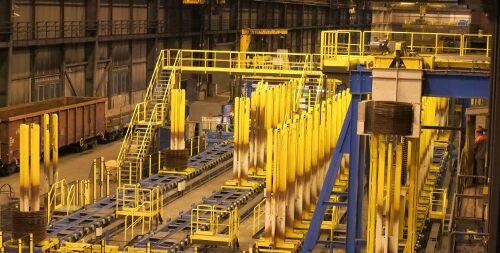 Neu im Walzwerk ist auch die Technologie, die von der Abnahme der Drahtringe bis zum Pressen zu Coils an den zwei Drahtlinien eingesetzt wird. Nach der Abnahme werden die Ringe über ein vertikales Palettensystem mit 60 Paletten und einer kleineren, horizontalen Hakenbahn zur Presse transportiert. Die Technik löst den knapp 40-jährigen horizontalen Transport über eine Hakenbahn ab.