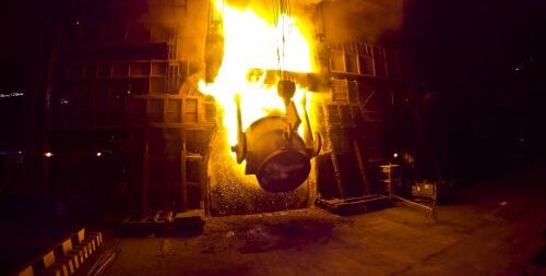 Quelle: Tata Steel Europe Bildtext: Flüssigeisen wird im Tata Steel-Werk im britischen Port Talbot in einen Sauerstoffaufblaskonverter gegossen. (Foto: Tata Steel)