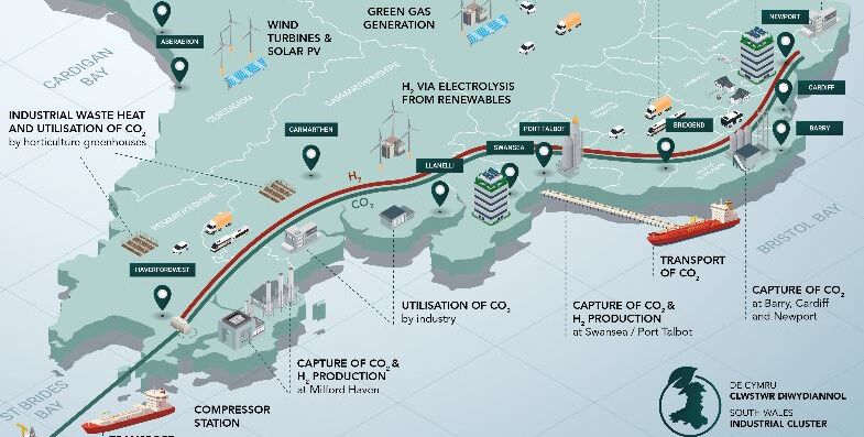 Die erste Phase des South Wales Industrial Clusters-Projektes „Roadmap und Realisierung“ hat durch bewilligte Fördermittel in Höhe von 295.000 Britischen Pfund von UK Research und Innovation – eine Kooperation von Universitäten, Forschungseinrichtungen, Unternehmen, gemeinnützigen Einrichtungen und der Regierung - deutlichen Antrieb gewonnen. Für weitere Stufen des Projekts stehen zusätzliche Fördermittel zur Verfügung. Sollte das Vorhaben erfolgreich sein, sieht es vor, dass Tata Steels integriertes Stahlwerk in Port Talbot hier als eines von vier möglichen zentralen Werken eine Kernrolle einnehmen wird.
