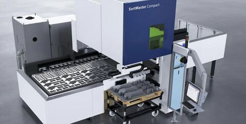 Der SortMaster Compact ergänzt bisherige Automatisierungslösungen der Anlage. Mit dem SheetMaster Compact können Anwender die beiden Maschinen bereits automatisiert mit Rohblechen beladen und Restgitter- sowie Microjoint-Tafeln entladen. Kleine Teile lassen sich weiterhin auch über die integrierte Sortierfunktion in Boxen unterhalb der Maschine ausschleusen.