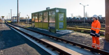 Vor gut einem Jahr hatten Fachfirmen das Baufeld umfangreich vorbereitet. Dafür wurden Gleise demontiert, eine Baustraße eingerichtet und Baugruben ausgehoben. Anschließend konnten die verschiedenen Betonsegmente - also Fundamente, Grubenteile und Wiegebrücken - sowie das neue Wiegehäuschen mittels Mobilkran eingebaut werden. Nachdem die Gleisanlagen fertiggestellt waren, wurde die neue Waage geeicht und mit allen Funktionen an das Logistik- Betriebsdatensystem angeschlossen.