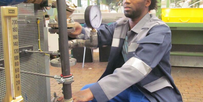 Der junge Mann stammt ursprünglich aus einem kleinen Dorf in Guinea. Schwere Kriminalität, Unruhen und Straßenblockaden sind in der Militärdiktatur an der Tagesordnung. Vor drei Jahren verließ Bah das westafrikanische Land, kam über Portugal nach Deutschland und hat im Siegerland Fuß gefasst. „Er lernt schnell und ist sehr engagiert“, lobt Ausbildungsleiter Heinz Joachim Klose den vorbildlichen Einsatz „seines“ Praktikanten. „Er weiß zu schätzen, dass das eine große Chance für ihn ist.“