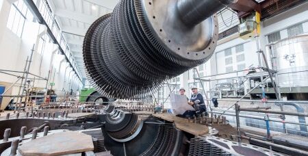Quelle: ThyssenKrupp Steel Europe Bildtext: Ein seltener Anblick: Eine Turbine von innen sehen die Kraftwerks-Spezialisten von ThyssenKrupp Steel Europe auch nicht alle Tage. (Foto: ThyssenKrupp Steel Europe)