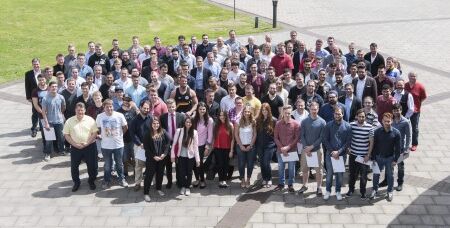 Quelle: thyssenkrupp Steel Europe Bildtext: Hier freuen sich Ausbildungsabsolventen der Stahlsparte von thyssenkrupp über ihre Lossprechung (Foto: thyssenkrupp Steel Europe)