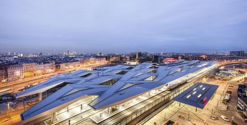 Der neue Wiener Hauptbahnhof ist eines der größten Infrastruktur-Projekte des Landes. Für die weithin sichtbare 37.000 m² große Dachkonstruktion wurden rund 7.000 Tonnen Stahl verbaut, eine Menge, die der des Eiffelturms entspricht.