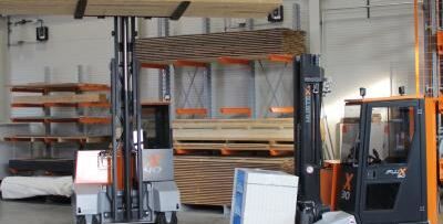 Den Transport von sperrigen oder langen Lasten in engen Gassen bewältigt der Elektro-Mehrwege-Seitenstapler FluX als Universaltalent. Durch seine Mehrwegelenkung transportiert das Fahrzeug lange Lasten wie ein Mehrwegestapler seitlich. Aufgrund der kompakten Rahmenlänge kann der FluX in Querfahrt darüber hinaus auch als klassischer Frontstapler zum Handling von Paletten eingesetzt werden. Das serienmäßige und patentierte Lenksystem HX ermöglicht durch einen fließenden Übergang von Quer- in Längsfahrt eine deutliche Zeitersparnis. Dadurch werden selbst lange Lasten schnell und ohne Zwischenstopp bewegt. Die permanente Allradlenkung trägt dabei zu kleinsten Wenderadien in allen Fahrtrichtungen bei. Der FluX ist erhältlich in Tragfähigkeitsklassen von 3.000 kg bzw. 4.000 kg, die Fahrtgeschwindigkeit mit dem Elektroantrieb beträgt in Längs- und Querfahrt bis zu 12 km/h. Im Vergleich zu dem kombinierten Einsatz von Front- und Seitenstaplern erreichen Anwender mit dem neuen Gegengewichtsstapler eine Zeitersparnis von rund 20 Prozent.