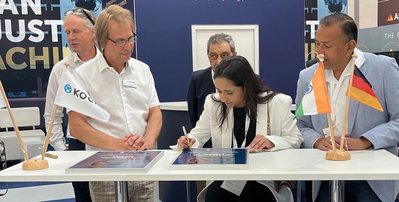 Der indische Stahlhersteller Vardhman Special Steels Ltd. und der Walzwerkausrüster Friedrich KOCKS GmbH & Co. KG haben auf der METEC 2023 in Düsseldorf feierlich einen Vertrag über die Lieferung eines Reduzier- & Sizingblocks vom Typ RSB® 370++/4 in 5.0 Design unterzeichnet. Der Block wird Teil des SBQ-Walzwerks von Vardhman Special Steels Ltd. in Nordindien und dort die technologischen Möglichkeiten in der Produktion von Spezialstählen erweitern.