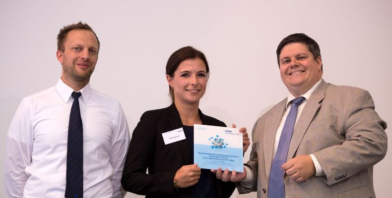 Quelle: VDW Bildtext: Von links nach rechts: Sven Staiger, Index-Werke, Esslingen, Nika Nowizki, Institut für Maschinenelemente (IMA) der Universität Stuttgart, Dr. Alexander Broos, Leiter Forschung und Technik, VDW Frankfurt am Main. (Foto: Rainer Jensen)