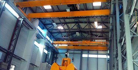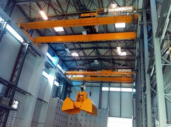 Die beiden Krane haben jeweils eine Tragkraft von 25 Tonnen, 15,35 Meter Spannweite und eine Hubhöhe von 25 Metern und laufen auf einer 45 Meter langen Kranbahn. Einer der beiden Krane ist mit einem Greifer ausgestattet, der über die integrierte Steuerung das Befüllen der 10 Meter tiefen Versuchsgrube ermöglicht.