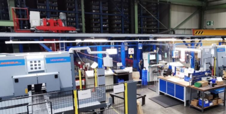 Günther + Schramm, Süddeutschlands führender Systemdienstleister für Stahl, Edelstahl und Aluminium, setzt gemeinsam mit der MEBA Metall-Bandsägemaschinen GmbH und Remmert, einem Lieferanten für Regal- und Pick-Systeme, ein Leuchtturmprojekt um. In enger Zusammenarbeit haben die drei Partner eine vollautomatisierte Sägeanlage mit Pendelrollenbahnen und Hochregallageranbindung verwirklicht. Das Ergebnis: eine Steigerung der Materialzugriffszeiten und Sägeschnittzeiten für den Stahlhändler.