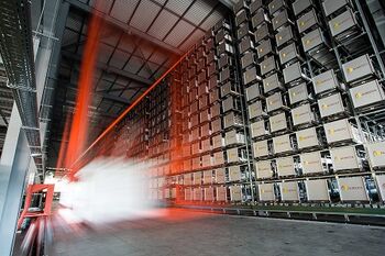 Das Lagerlayout sieht deshalb vor, dass die Maschinen sich um das Wabenlager gruppieren. Die Versorgung der Fertigung realisiert Alsecco über 16 Lagerstationen. Durch den hohen Automatisierungsgrad des Wabenlagers werden die Materialien bedarfsgerecht an der entsprechenden Station bereitgestellt. Die Stillstandszeiten der Maschinen gehen dadurch gegen null.