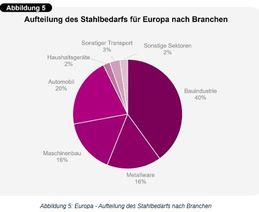 rechnen. - Um den Kurzfristhorizont etwas zu präzisieren und den Erwartungskorridor genauer eingrenzen zu können, schauen wir uns die Schlüsselbranchen für Stahl in Europa an (siehe Abbildung 5).