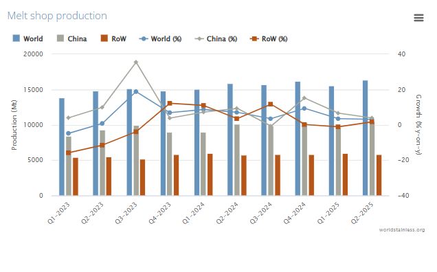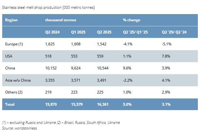 Weltweite Edelstahlproduktion im ersten Halbjahr 2025 bei 31,9 Mio. Tonnen