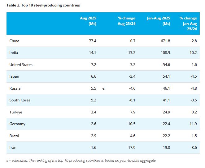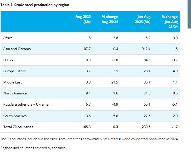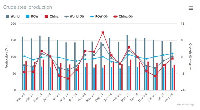 Weltweite Rohstahlerzeugung steigt im August leicht an