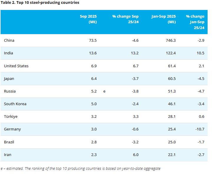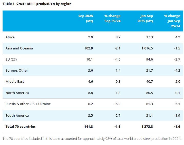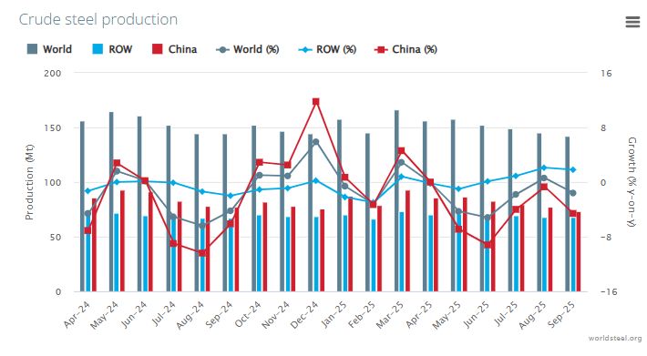 Weltweite Rohstahlproduktion im September leicht rückläufig