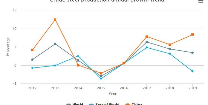 Weltweite Rohstahlproduktion steigt 2019 um 3,4 Prozent