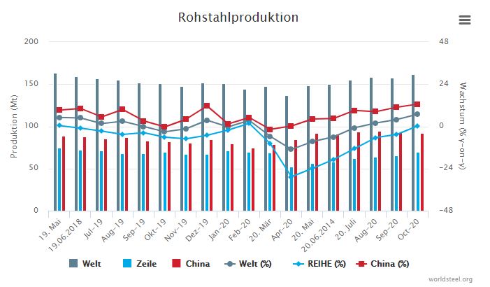 Weltweite Rohstahlproduktion steigt auf 161,9 Mio. Tonnen