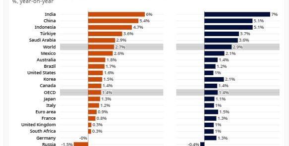 Der Wirtschaftsausblick prognostiziert eine Abschwächung des globalen BIP-Wachstums von 3,3 % im Jahr 2022 auf 2,7 % im Jahr 2023, gefolgt von einer Belebung auf 2,9 % im Jahr 2024.