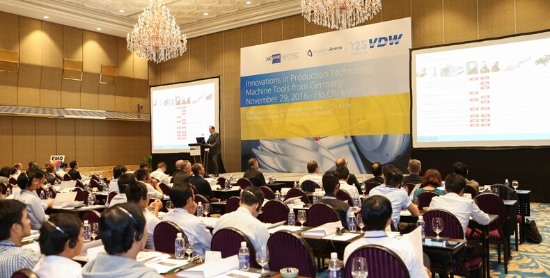 Quelle: VDW Bildtext: Rund 100 vietnamesische Industrievertreter erhielten auf dem VDW-Symposium in Ho Chi Minh Stadt umfassende Einblicke in das Produktportfolio deutscher Werkzeugmaschinenhersteller. (Quelle: AHK Vietnam)