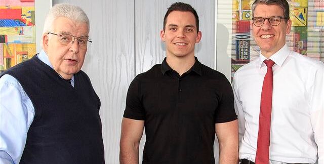 Quelle und Foto: MAPAL Dr. Kress KG / Bildtext: Beleg des hohen Ausbildungsstandards bei MAPAL: Dr. Jochen Kress (r.) und Dr. Dieter Kress (l.) freuen sich mit Marcel Heiter über dessen Auszeichnung als „Werkzeugschleifer des Jahres 2018“