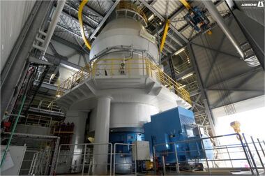 Quelle: LOESCHE GmbH, marketSTEEL; Bildtext: Mühlentyp LM 46.2+2 CS, hier in einem Werk in Duisburg (Foto: Loesche)