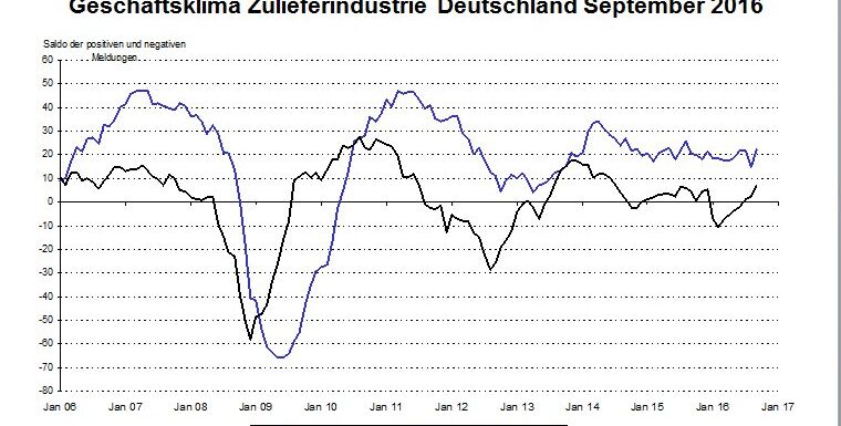 Quelle: ArGeZ Grafik: Geschäftsklima Zulieferindustrie Deutschland September 2016 (Quelle: ArGeZ)
