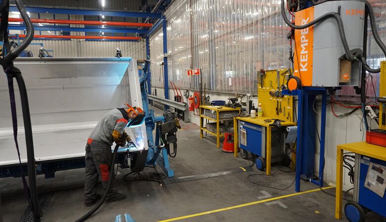 „Ein Fokus lag bei Aebi Schmidt ganz klar auf der Verbesserung der Arbeitsbedingungen“, betont Facility Manager Steven Koenderink. „Die Luftqualität war dabei eines der zentralen Themen.“ So wollte das Unternehmen Gefahrstoffe mit lungenbelastender, toxischer oder gar krebserzeugender Wirkung – eben solche, wie sie vor allem beim eingesetzten MIG/MAG-Schweißverfahren für die Herstellung der stahllastigen Anbauteile in großen Mengen entstehen – ganz aus der Produktion verbannen. Die steigende Nachfrage der vergangenen Jahre hatte ein Mehr an Schweißarbeiten generiert. Die Entwicklung hin zum weltweit führenden Anbieter von Systemen zur Reinigung und Räumung von Verkehrsflächen sowie zur Pflege von Grünflächen zog aber gleichfalls höhere Anforderungen an den Arbeitsschutz nach sich. Diese Geschichte wollte Aebi Schmidt mit gesunden und zufriedenen Arbeitskräften fortschreiben. Denn im Wettbewerb um die besten Köpfe spielen Argumente der Mitarbeitergesundheit eine zunehmend wichtige Rolle. Saubere Hallenluft als Teil des Arbeitgeberimages: Auf der Suche nach einem Anbieter für Absaugtechnik setzte sich am Ende die KEMPER GmbH aus dem benachbarten Deutschland durch. „Vor allem wegen der positiven Testerfahrungen und der umfassenden Beratung im Zuge unserer Entscheidungsfindung“, blickt Koenderink zurück.
