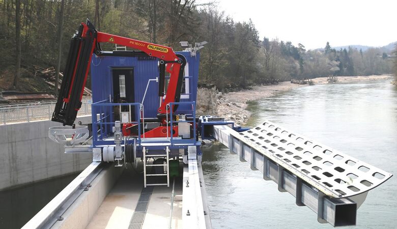 Laakirchen/Aalen - Tecdos Omega Drive im Stahlwasserbau: Der innovative Antrieb von RUD bewegt eine Rechenreinigungsanlage, die Schwemmgut entfernt. So können Wehranlage