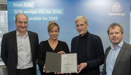 Als Vorreiter in der Klimatransformation hat sich thyssenkrupp Steel zum Ziel gesetzt, bereits ab 2030 jährlich ca. 5 Mio. Tonnen CO2-neutralen Stahl zu produzieren. Mit bluemint® Steel bietet thyssenkrupp Steel bereits heute zertifizierte Stähle mit einer bis zu 70 % verminderten CO2-Intensität an. 2045 soll die Stahlproduktion vollständig klimaneutral sein.